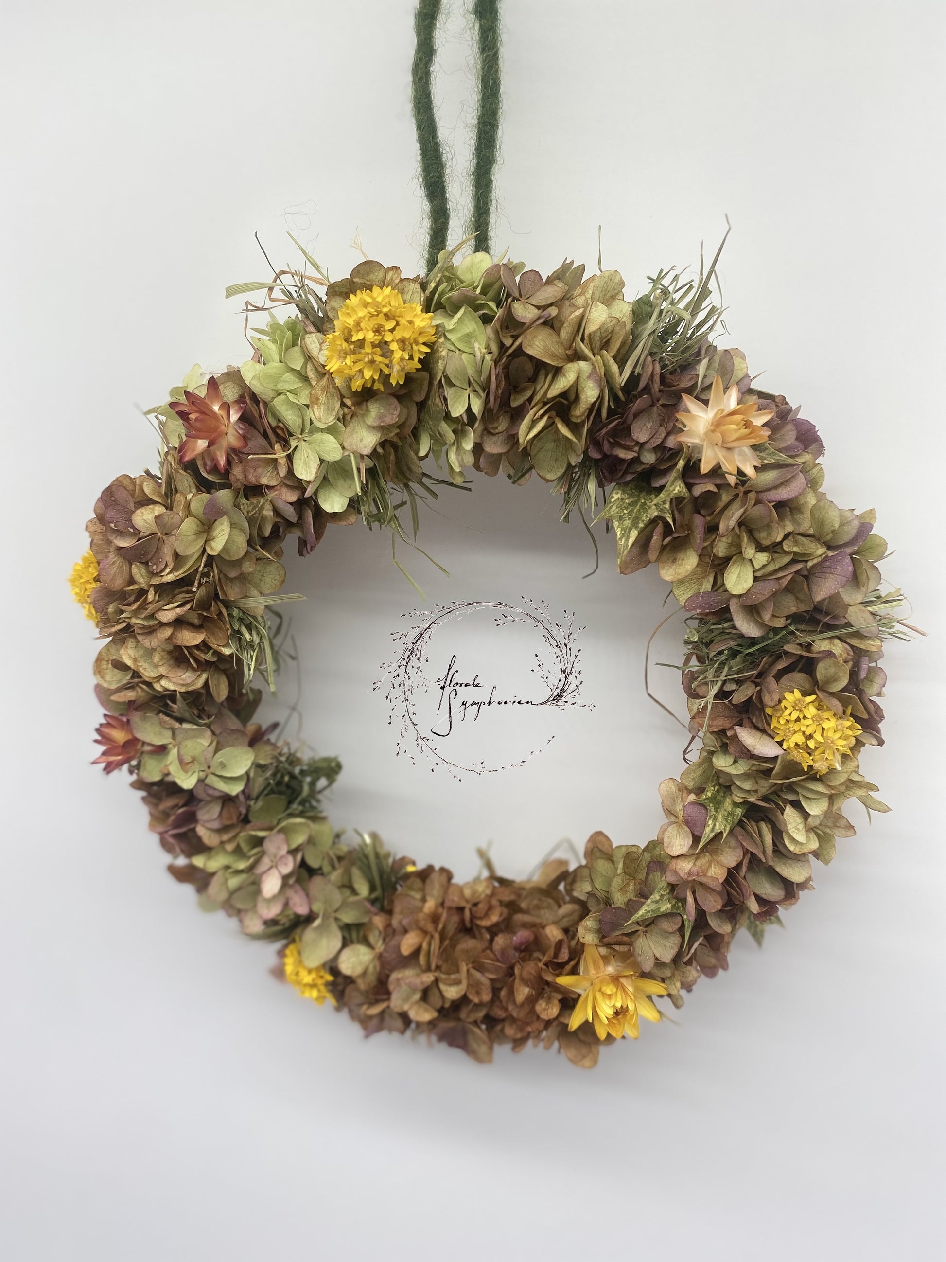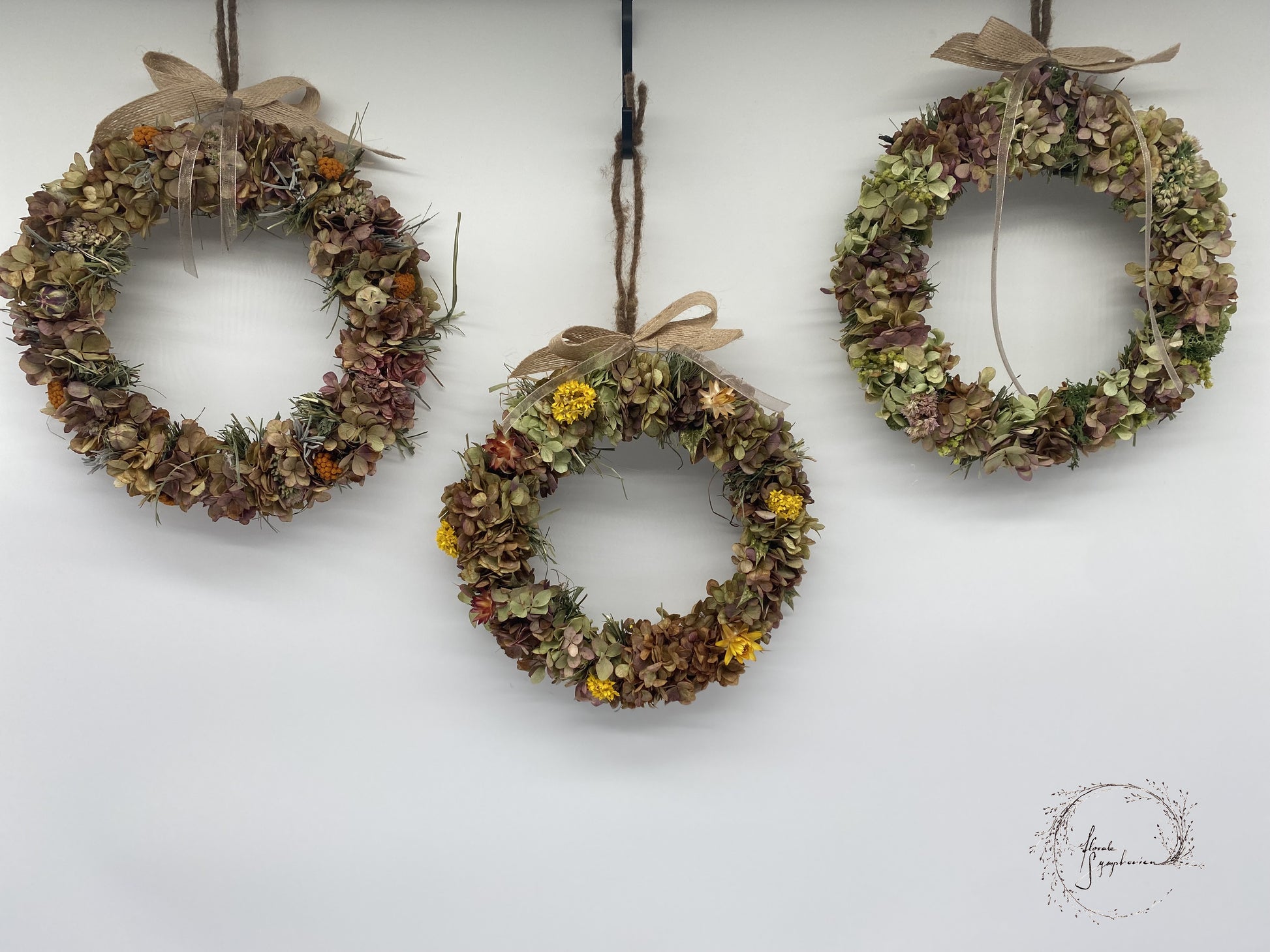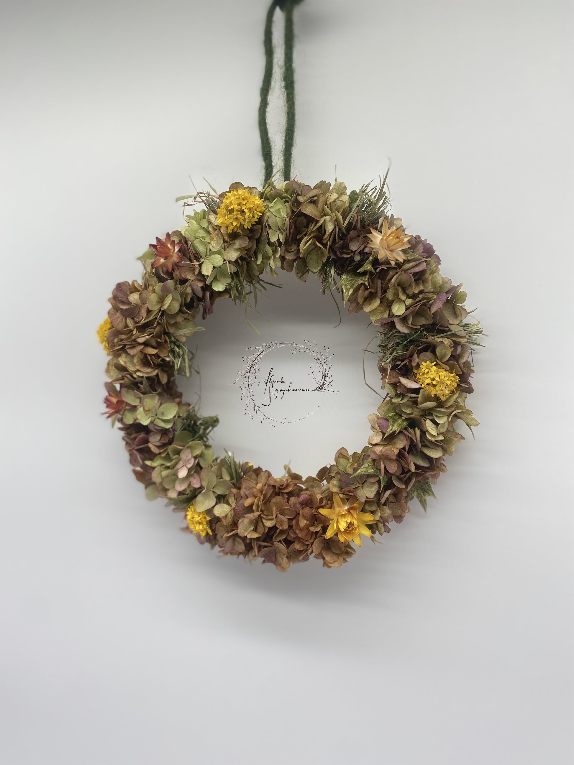 Die verwendeten Hortensien sind nicht präpariert, sondern naturbelassen – das heißt: Sie trocknen mit der Zeit ganz natürlich ein und verändern dabei ihre Farbe & Form.