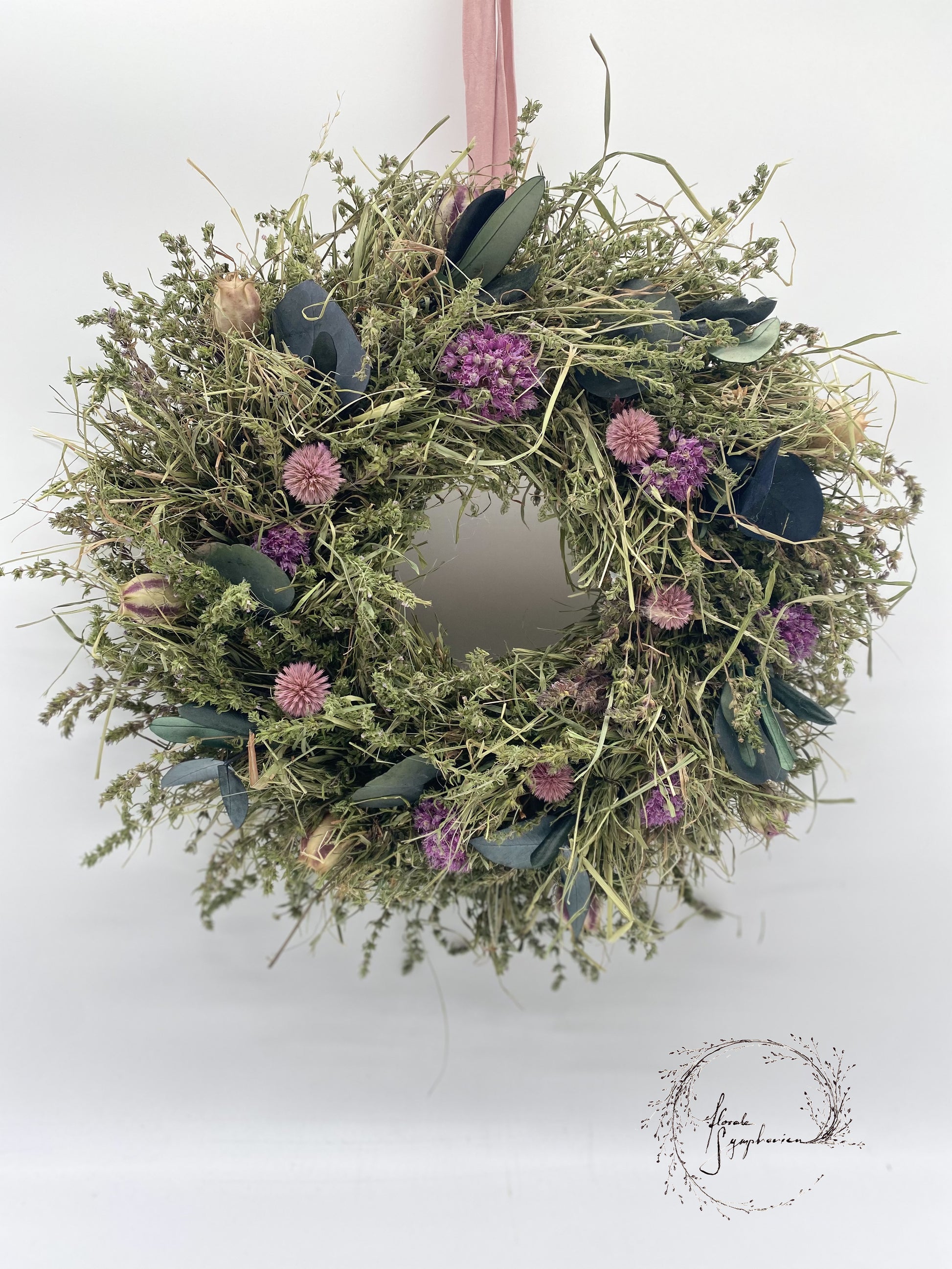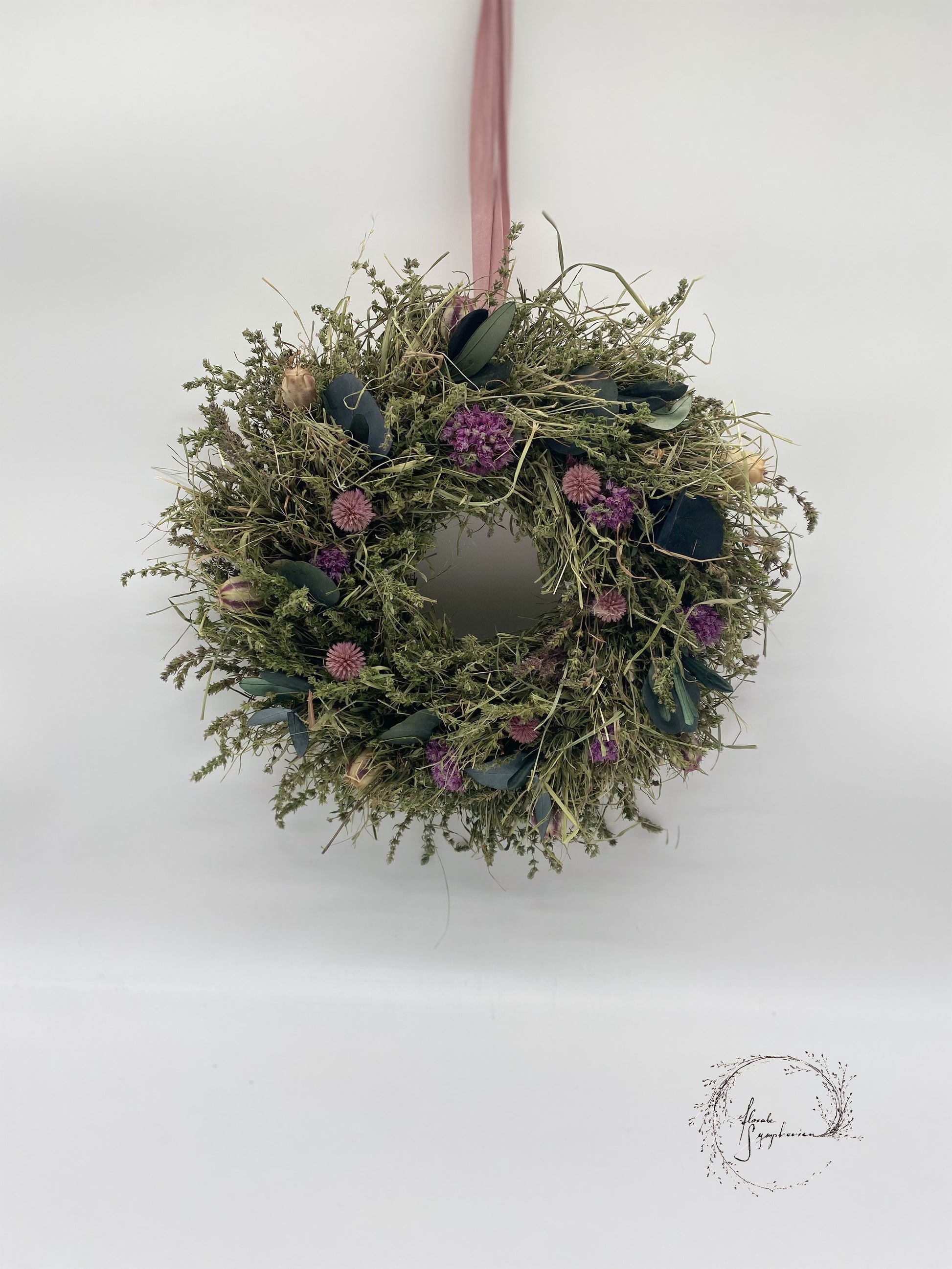 Dieser Kranz aus einem Mix selbst getrockneter Kräuter und Trockenblumen bringt natürliche Schönheit und frischen Duft in jeden Raum. Handwerklich gefertigt, überzeugt er durch Nachhaltigkeit und zeitlose Eleganz.